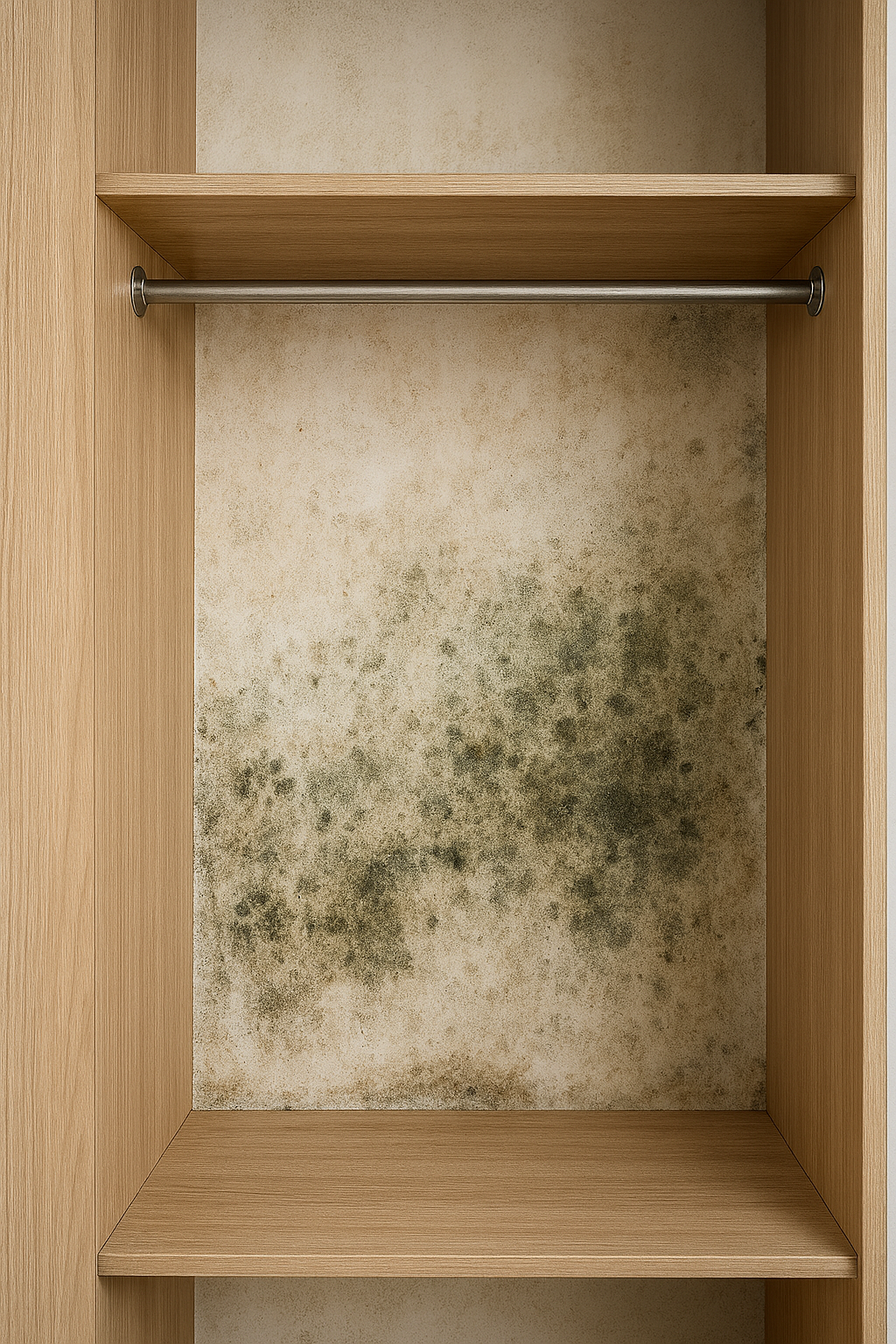 4-کیفیت پایین مصالح و اجرای غیر اصولی کمد دیواری: استفاده از MDF یا چوب بیکیفیت، نبود عایقکاری مناسب و اجرای غیر استاندارد، زمینهساز مشکلات رطوبتی است.